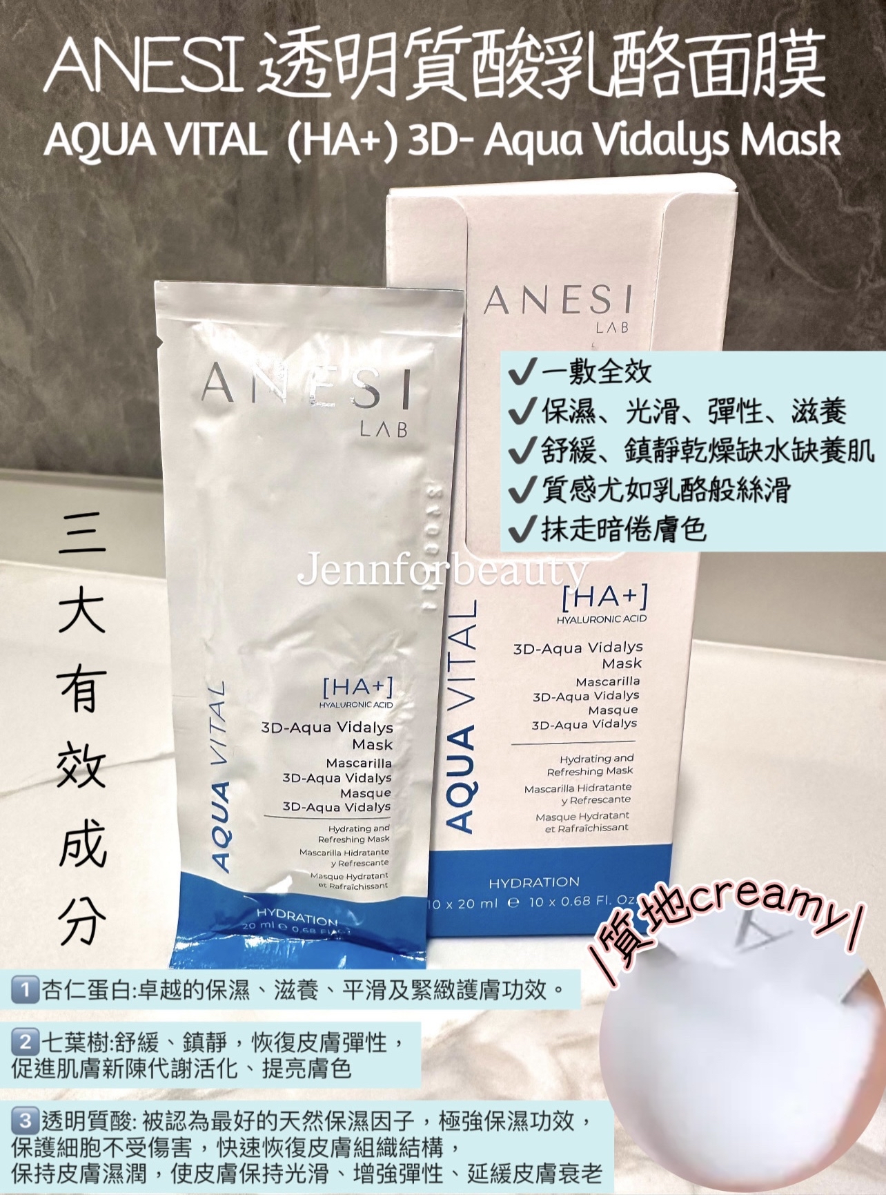 店主珍用足一盒先同廠攞貨💕好用先賣 敷七日 皮膚狀態真係唔同 飽滿程度、水潤感、光澤感 同我未用呢隻無得比🥶 主要功效: ✔重啟肌膚再生,完全滿足缺水肌的需求 ✔立即舒緩、抗皺、回復肌膚彈滑 ✔提升肌膚保濕度與透亮度 ✔抹走暗倦膚色,煥發肌膚活力,質感尤如乳酪般的軟滑。 主要有三大成分 1️⃣杏仁蛋白:卓越的保濕、滋養、平滑及緊緻護膚功效。 2️⃣七葉樹:舒緩、鎮靜,恢復皮膚彈性,促進肌膚新陳代謝活化、提亮膚色 3️⃣透明質酸: 被認為最好的天然保濕因子,極強保濕功效,保護細胞不受傷害,快速恢復皮膚組織結構,保持皮膚濕潤,使皮膚保持光滑、增強彈性、延緩皮膚衰老 呢三個成份已經足以令我哋皮膚飲飽水! 特別好似我呢種敏感肌、偏缺水、乾性肌係非常之適合用! 乾性肌敷咗呢隻面膜之後,係直頭令皮膚有一種重生嘅感覺,每次敷完之後都會覺得皮膚好柔軟、有光澤感 因為你皮膚飲飽水而發出來的光澤感、水潤感 第一次用嘅話 可以好似珍珍咁 一敷敷足7日,之後再隔住嚟敷去keep住用 乾性肌去敷會有種鎮靜嘅感覺 一開始用會有種吉吉地感覺,係正常的 因為成分入左皮膚底層 去喚醒細胞 起身啦皮膚飲水啦 呢隻面膜嘅質地係非常之Creamy 一包20ml足夠你用全面連埋頸 厚敷! 特別係做完高能量醫美療程,嚴重缺水嘅時候,敷佢一流! 即時!立即!馬上補水! 用法:潔膚淨肌,將面膜厚厚的均勻掃在面部和頸部,靜待15-20分鐘 然後輕輕按摩,再以清水潔面,再用乾淨的毛巾輕輕印